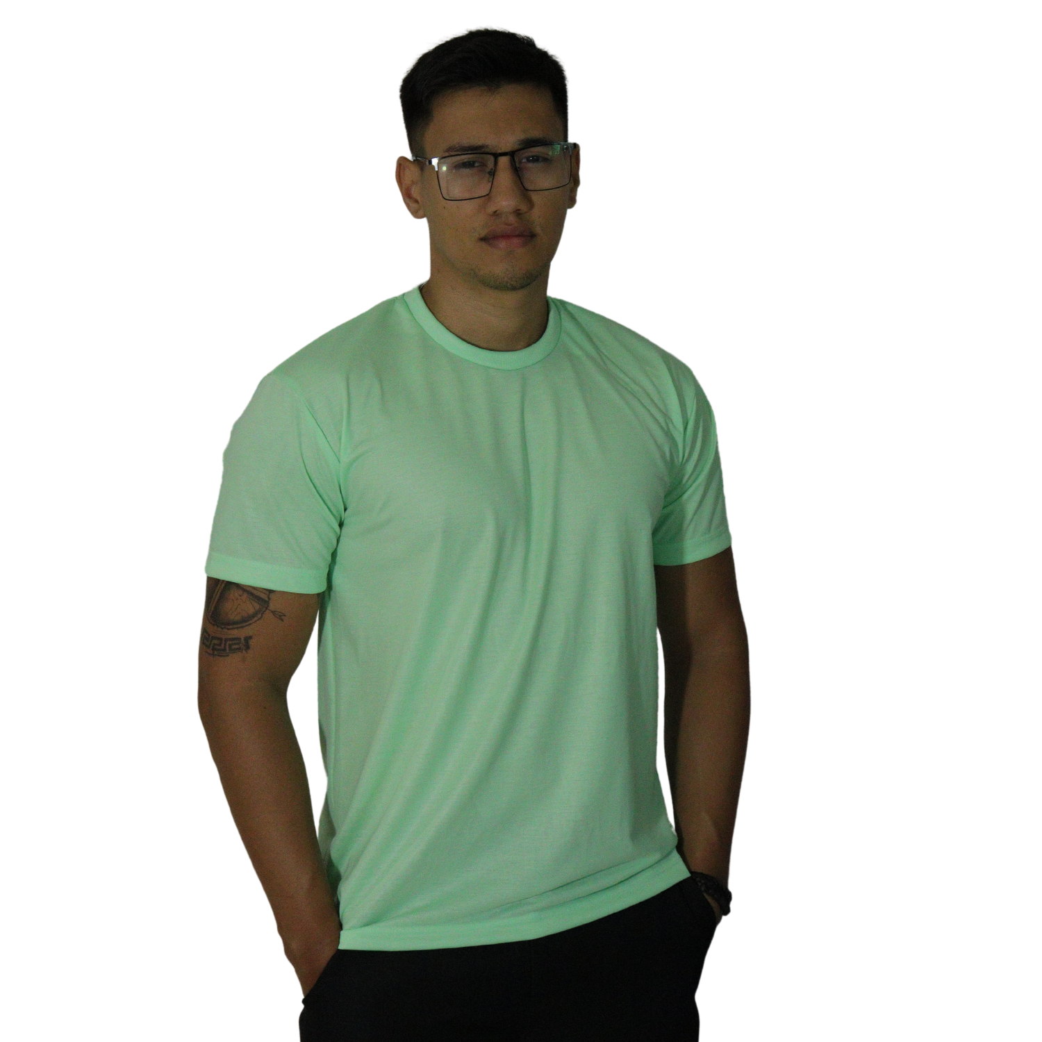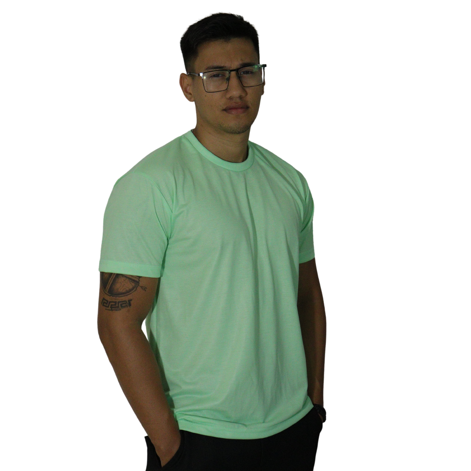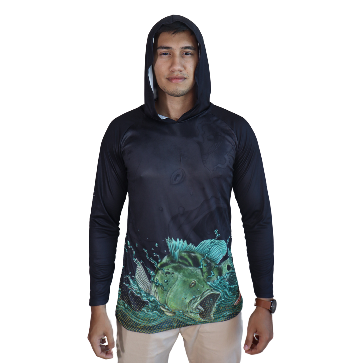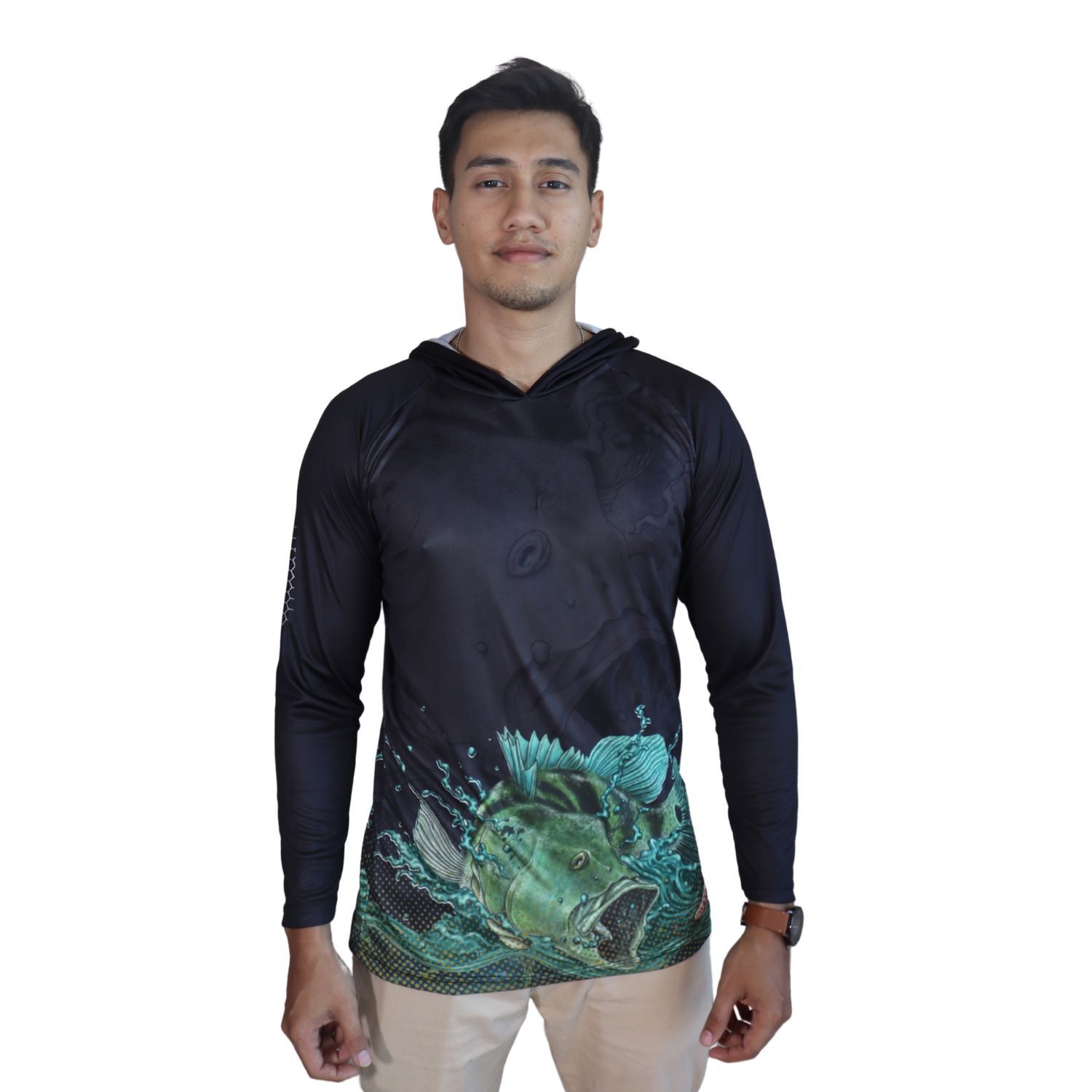 Camiseta masculina com capuz manga longa meia malha pv verde