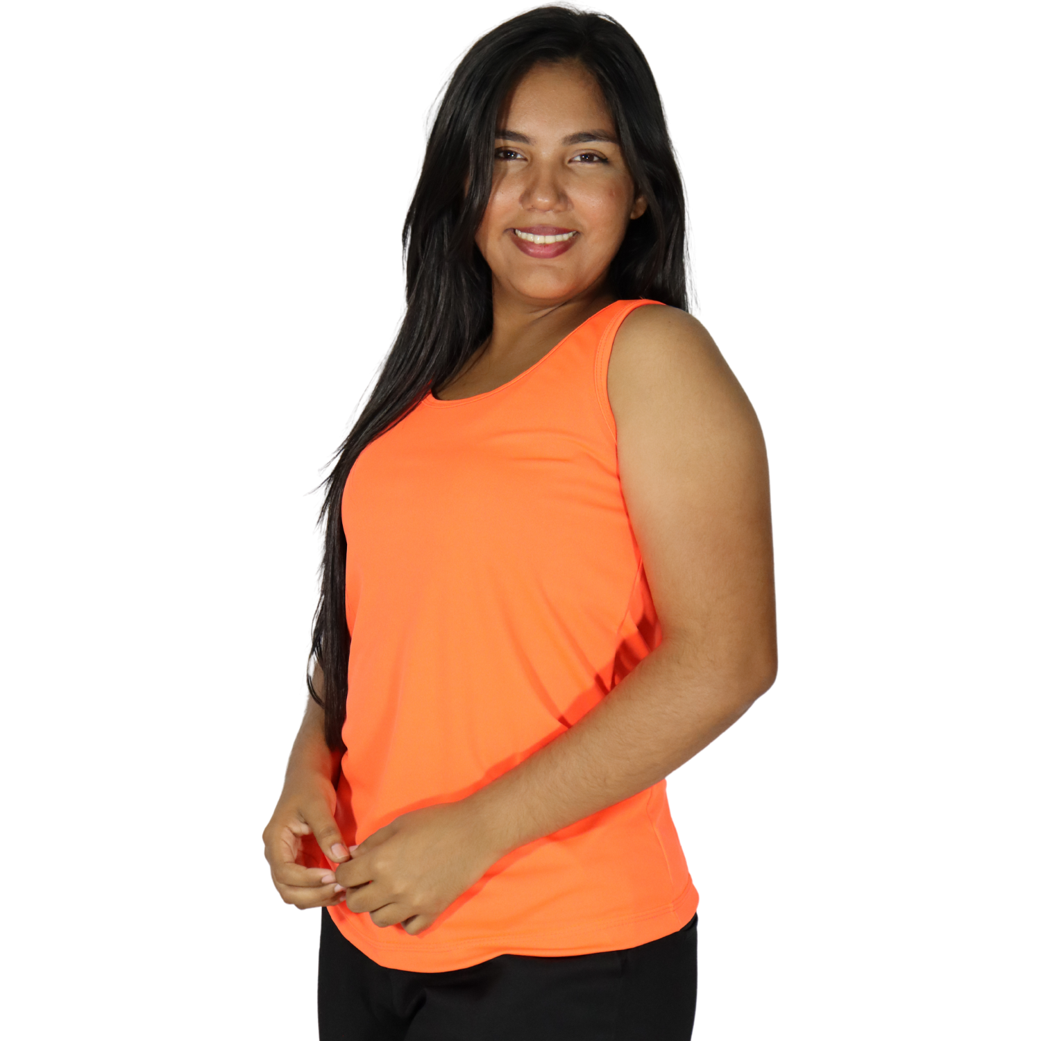 Regata feminina tecido cacharrel laranja neon
