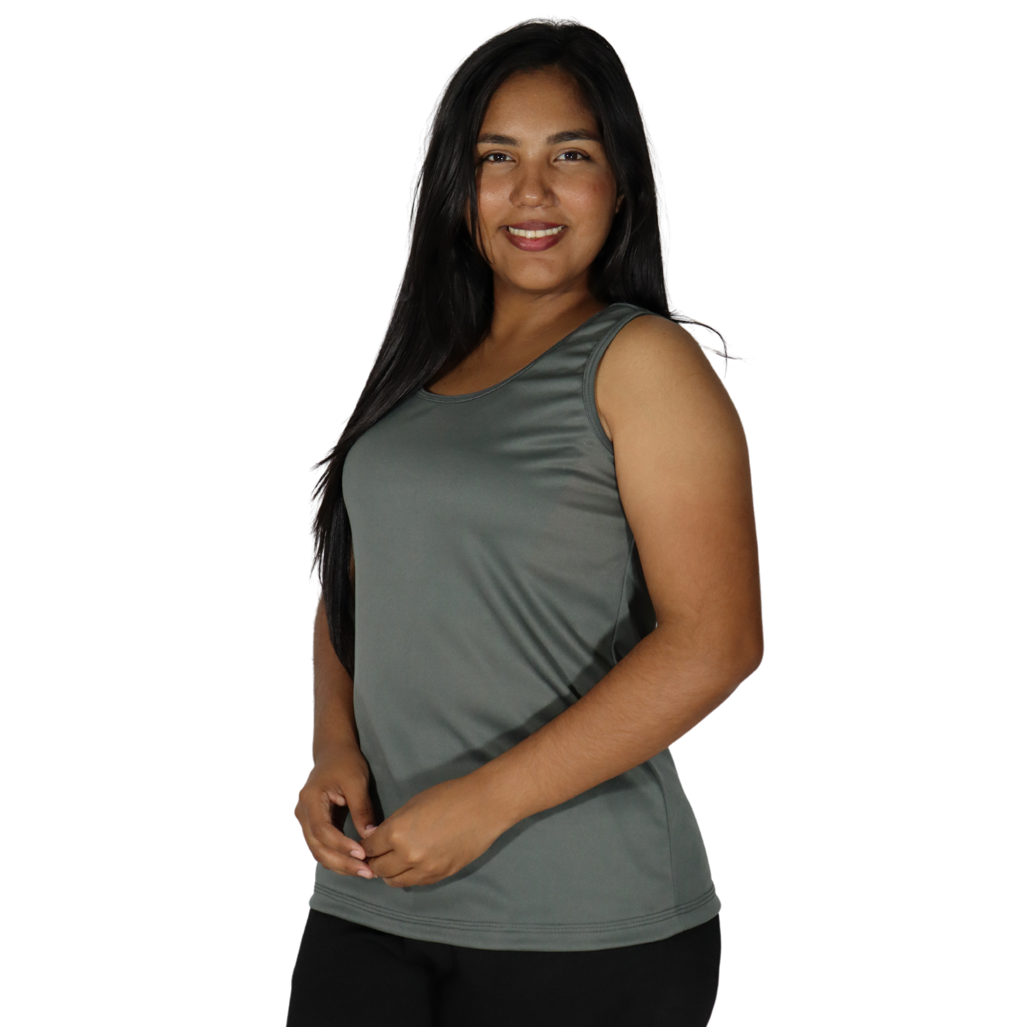 Regata feminina tecido cacharrel cinza chumbo