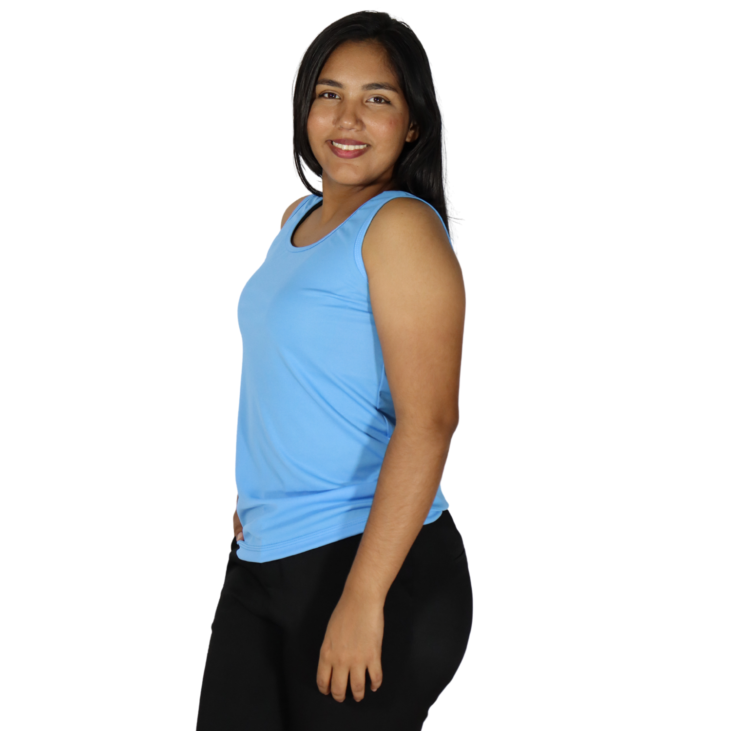 Regata feminina tecido cacharrel azul celeste
