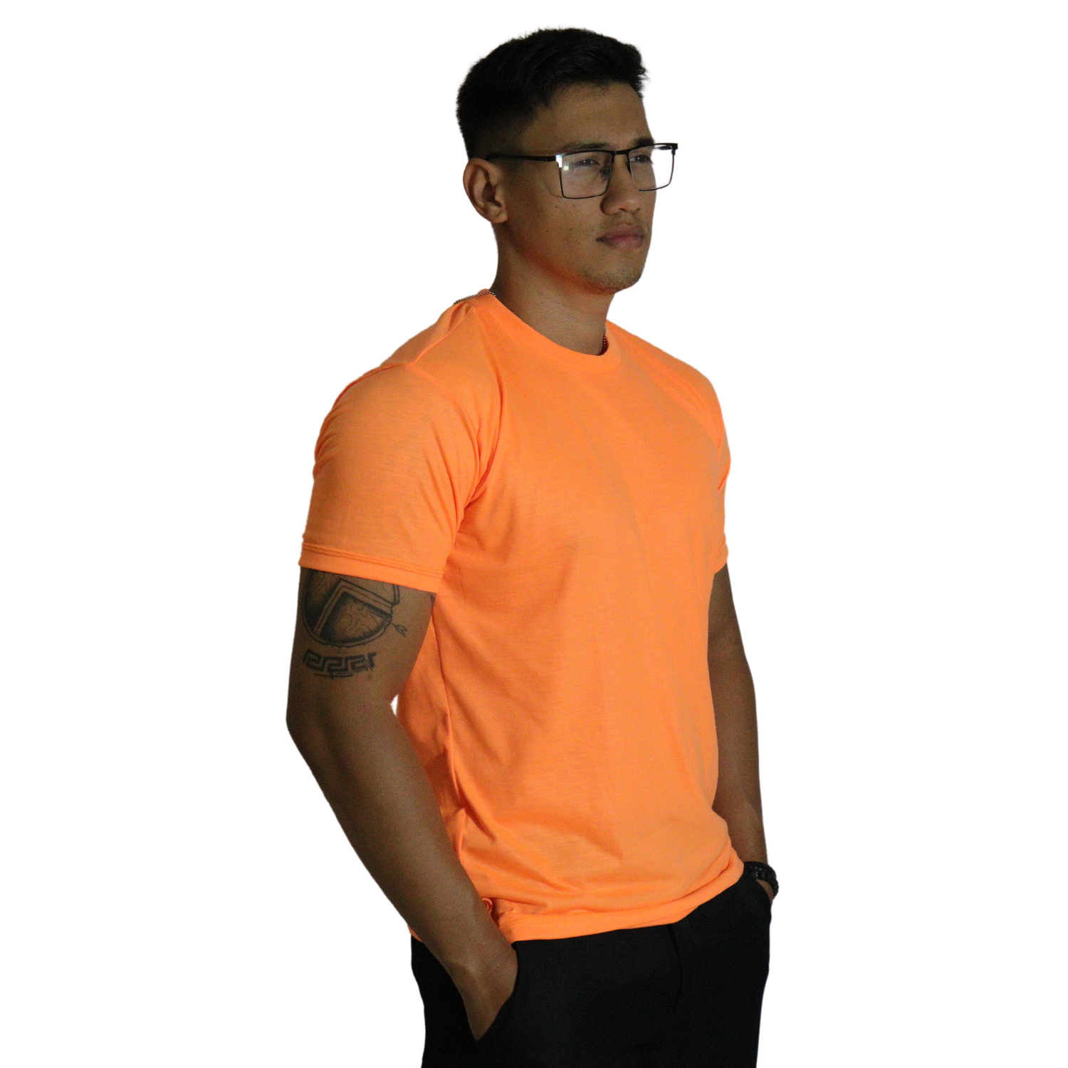 Camiseta masculina com capuz manga longa meia malha pv laranja