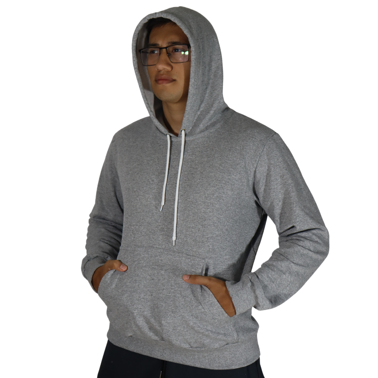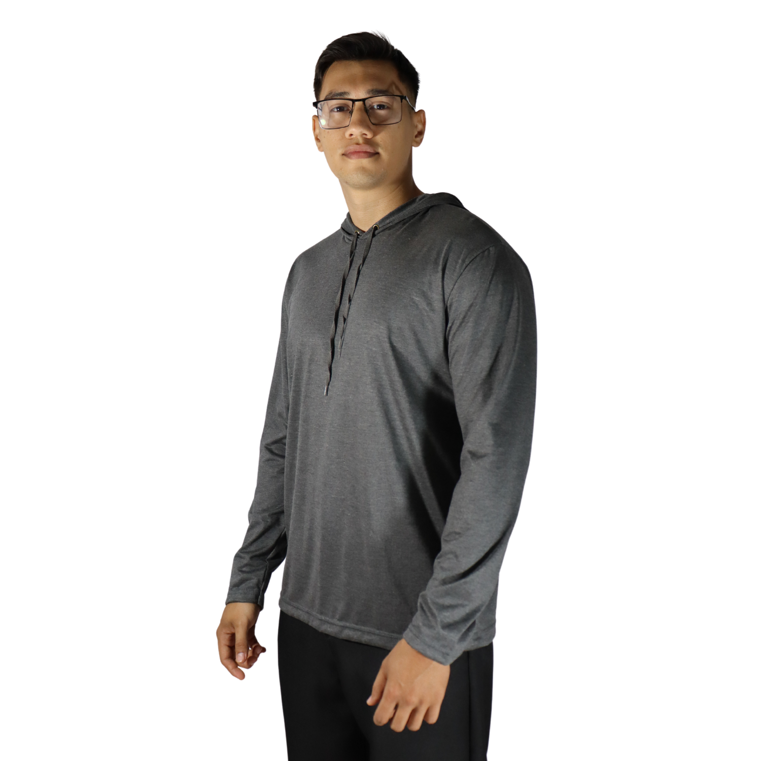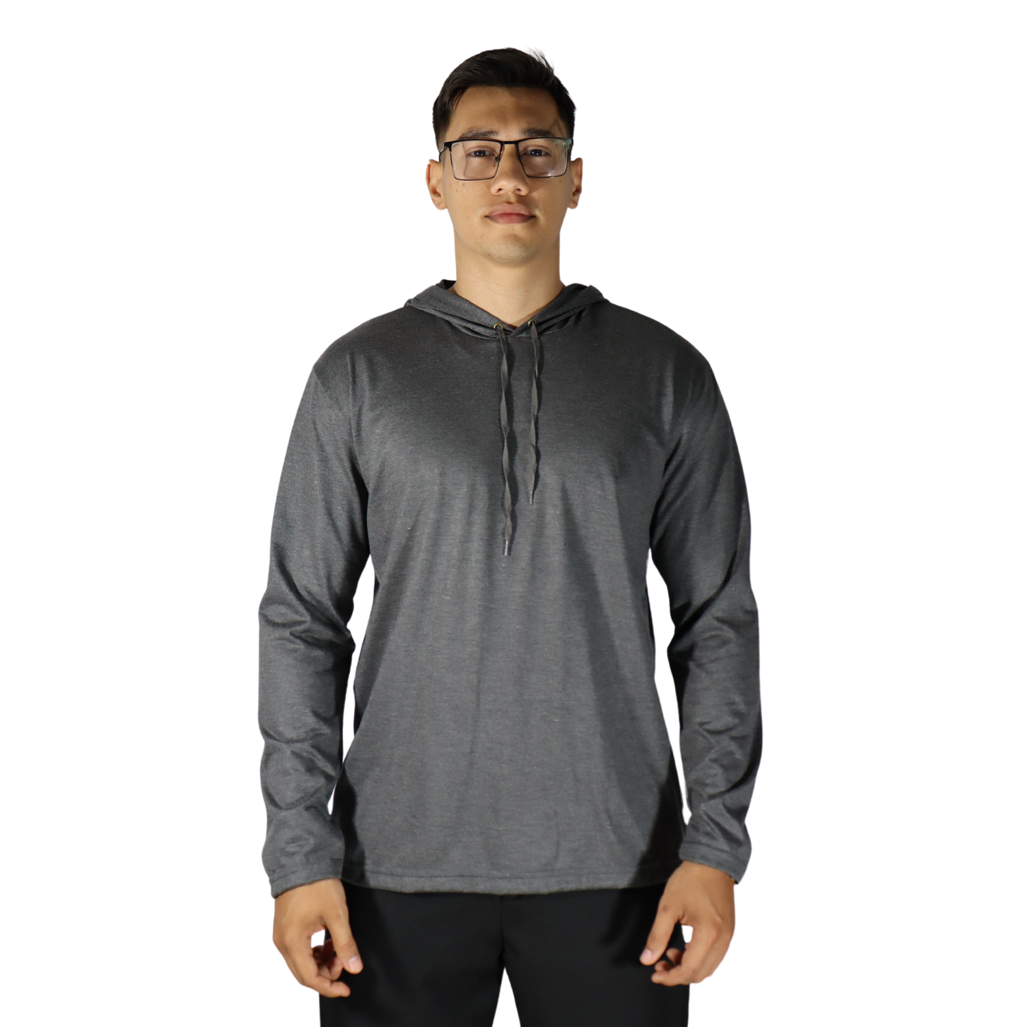 Camiseta masculina com capuz manga longa meia malha pv cinza mescla escuro