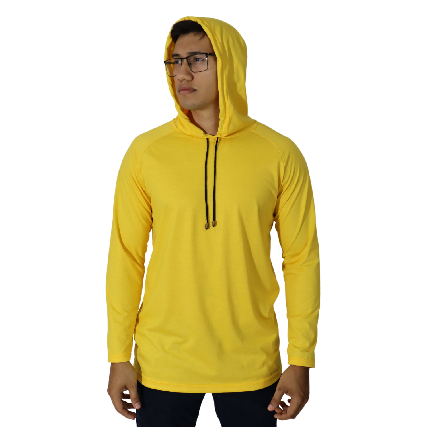 Camiseta masculina com capuz manga longa meia malha pv amarelo