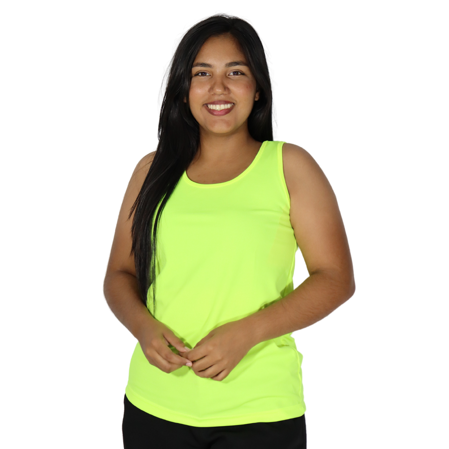 Regata feminina tecido cacharrel amarelo flúor
