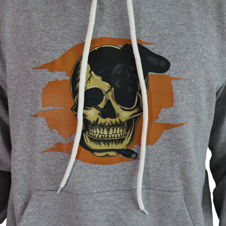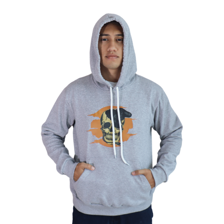 Agasalho masculino Game Over Skull moletom cinza mescla claro
