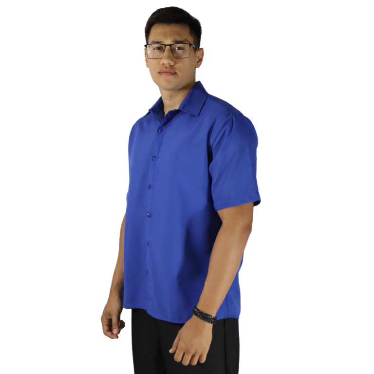 Camisa masculina social clássica manga curta sem bolso oxfordine azul royal
