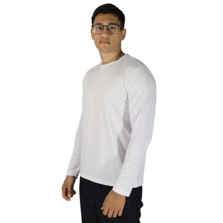 Camiseta masculina fit manga longa gola redonda dry plus branco