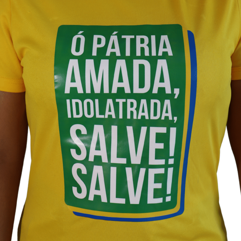Camiseta feminina Hino nacional cacharrel amarelo ouro