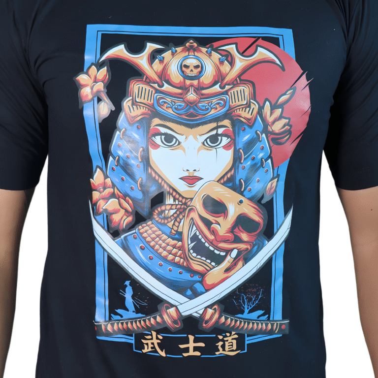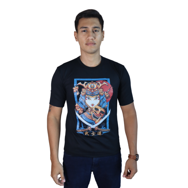 Camiseta masculina 武士道 (O caminho do guerreiro) malha pes preto