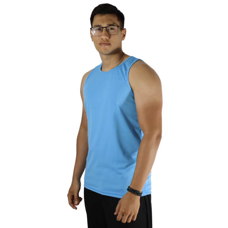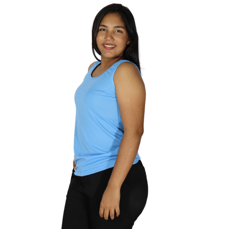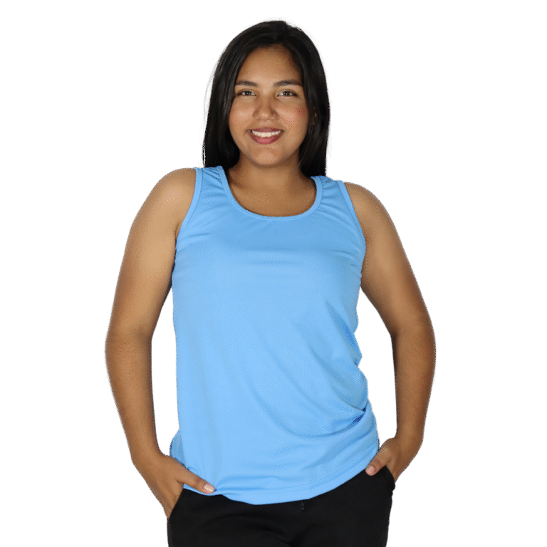 Regata feminina tecido cacharrel azul celeste