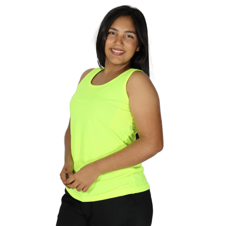 Regata feminina tecido cacharrel amarelo flúor