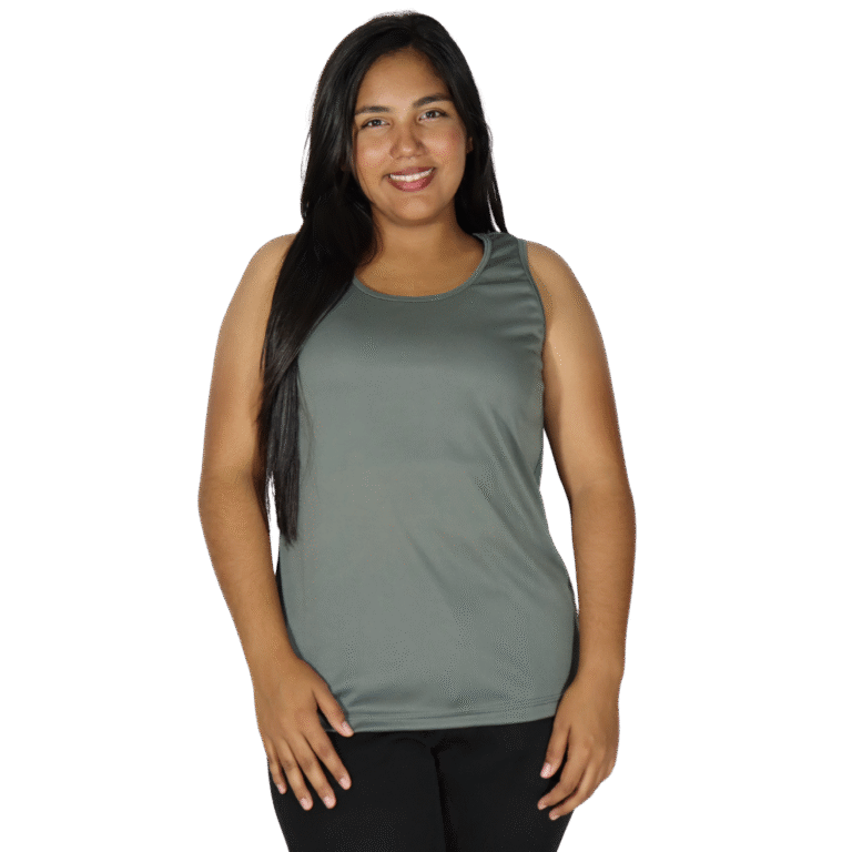 Regata feminina tecido cacharrel cinza chumbo