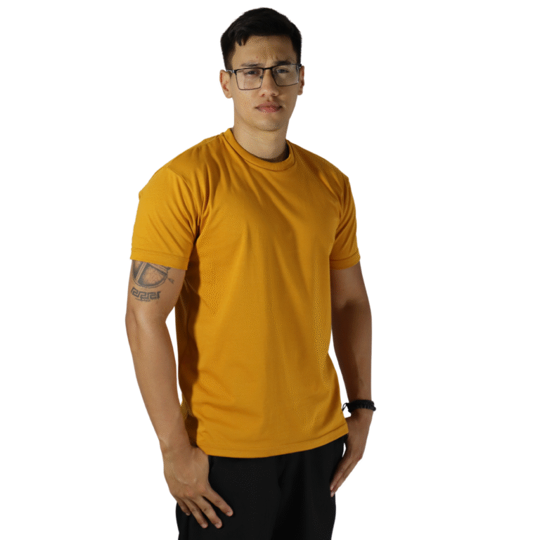 Camiseta masculina malha menegotti confort 100% algodão mostarda
