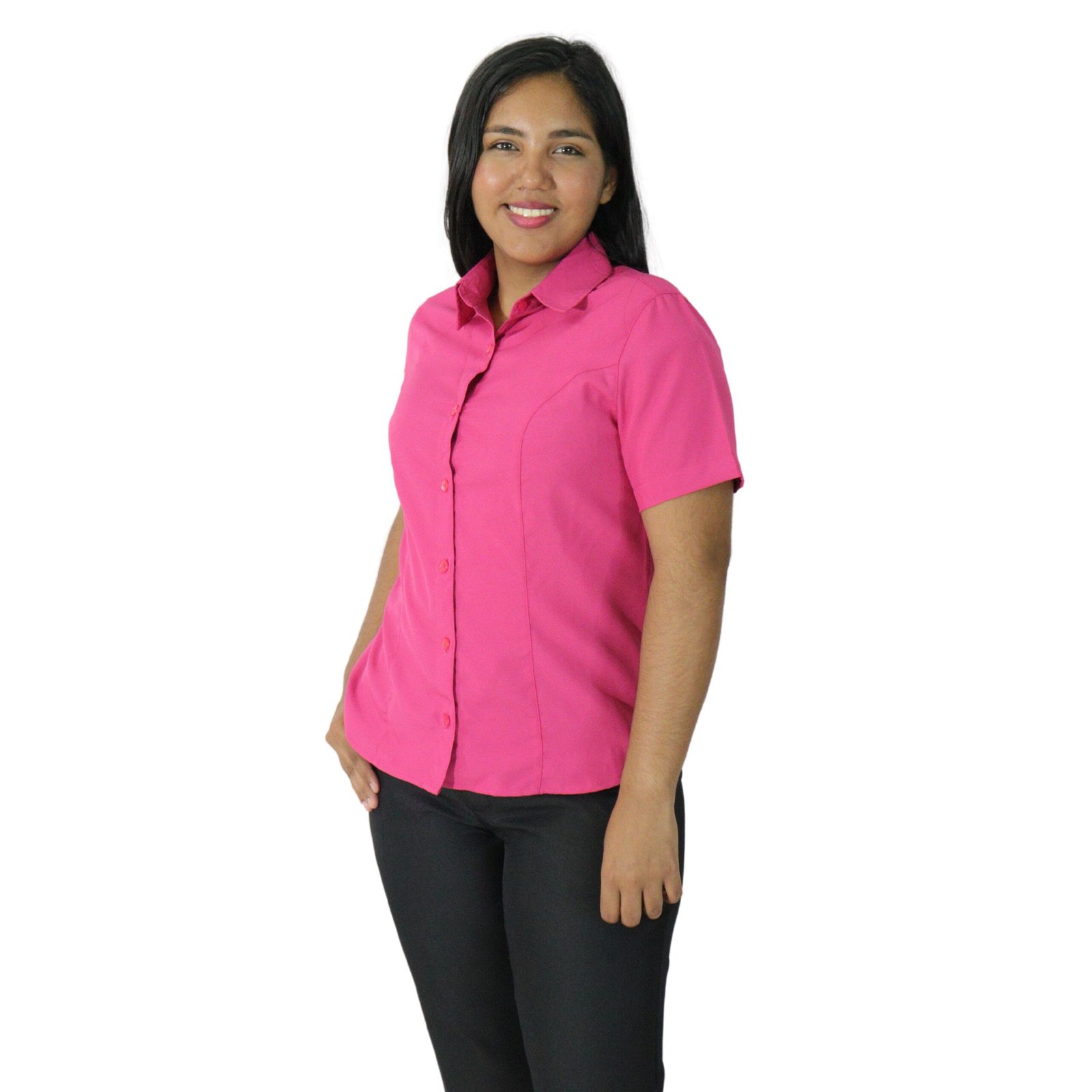 Camisa feminina social clássica manga curta oxfordine rosa choque