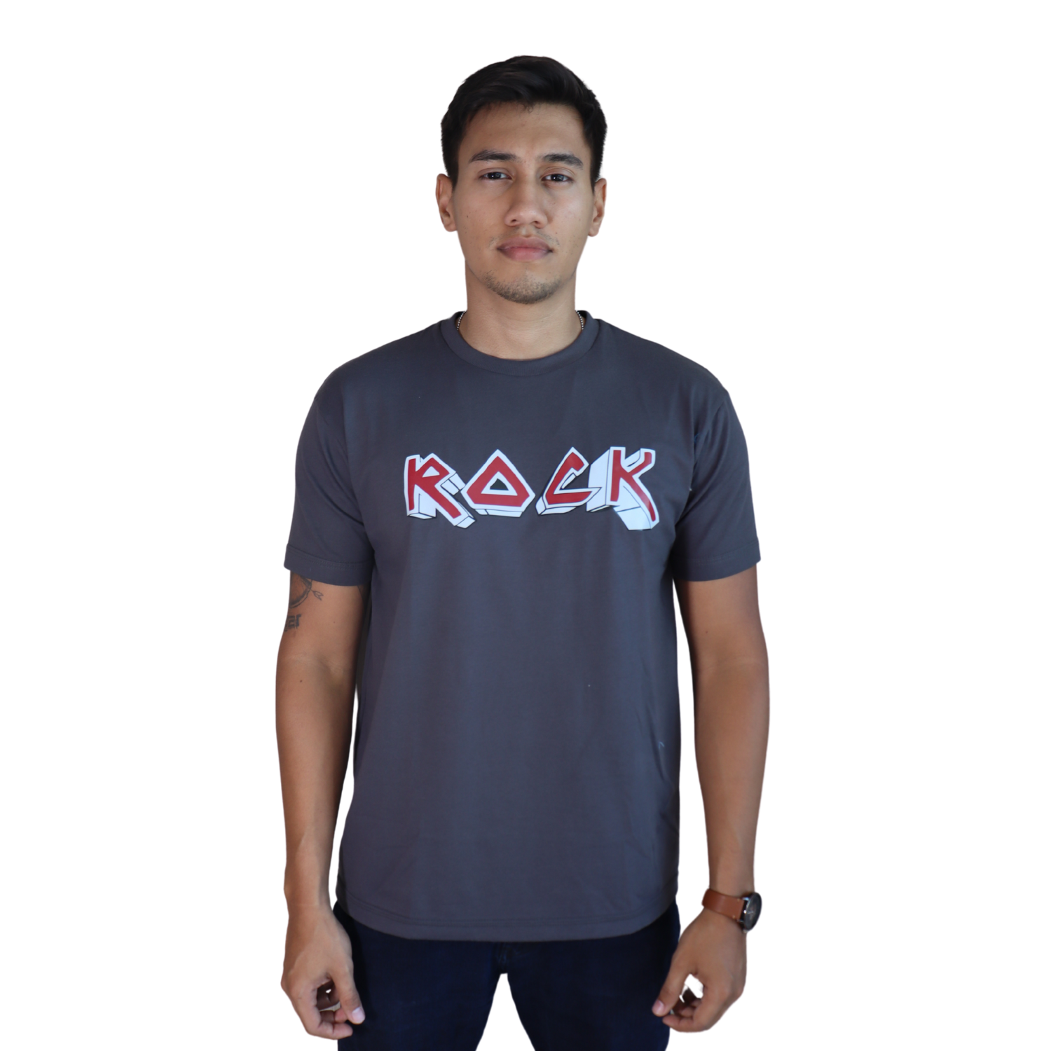 Camiseta masculina Rock algodão menegotti cinza chumbo